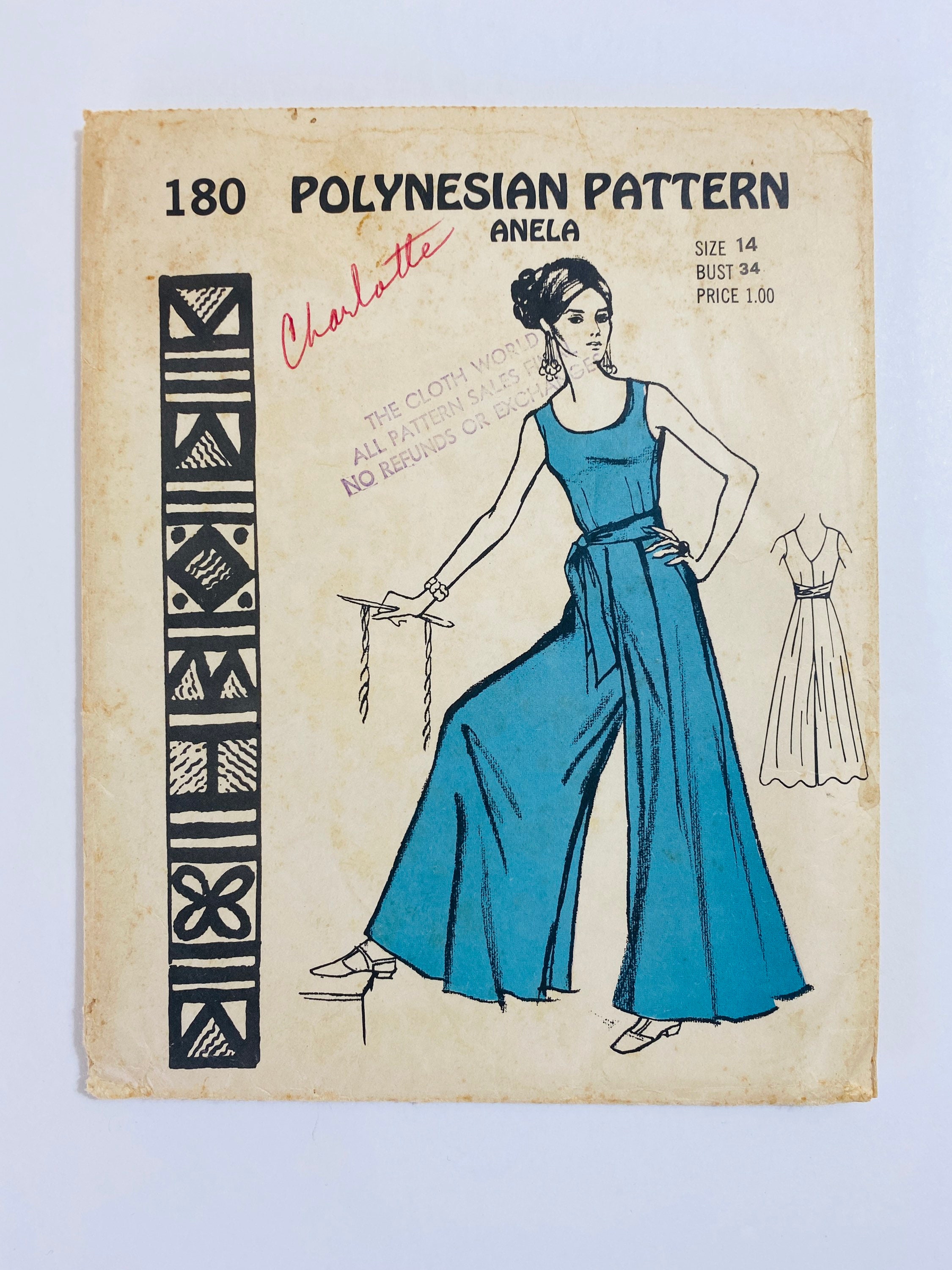 Polynesian Pattern 180 Bust 34 Vintage 1970s Sewing Etsy